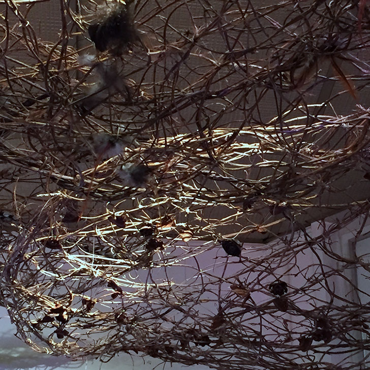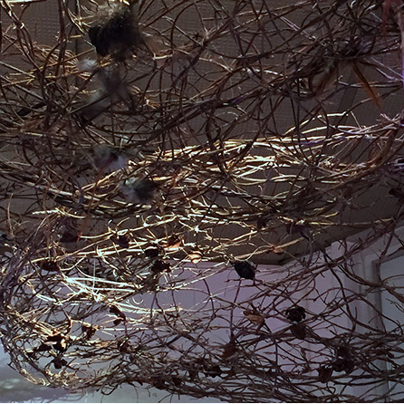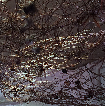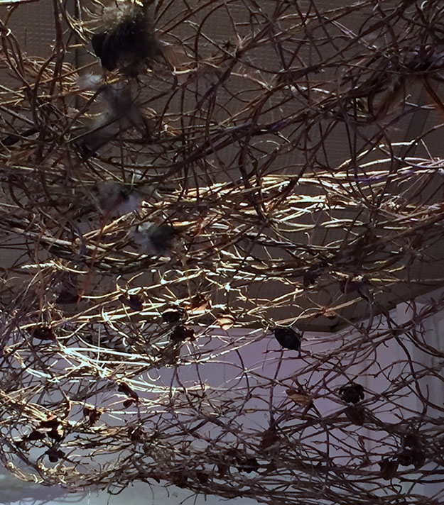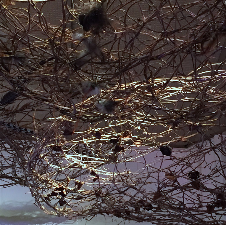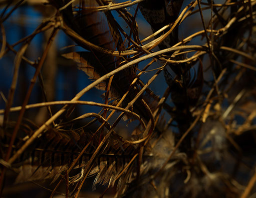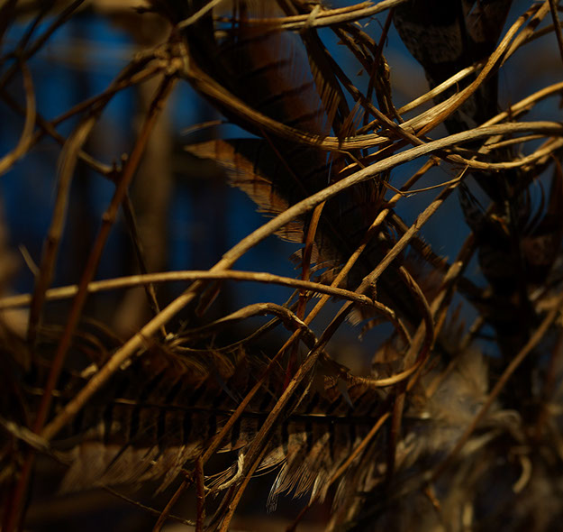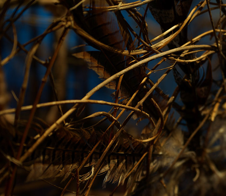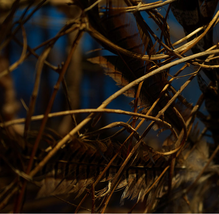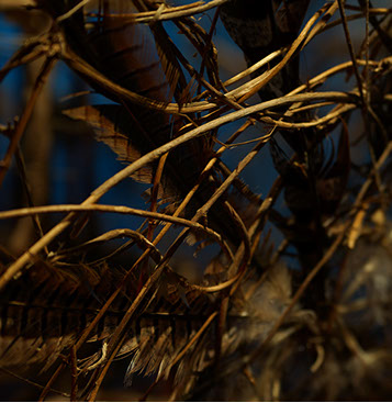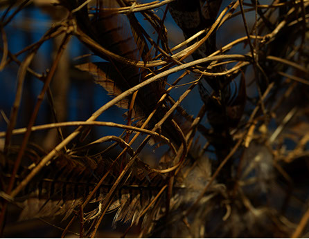 Bois, lianes, cordes, écorces, plumes, tissus, chanvre, perles, cristal de roche.