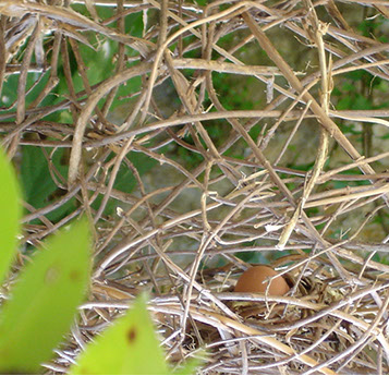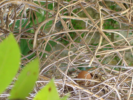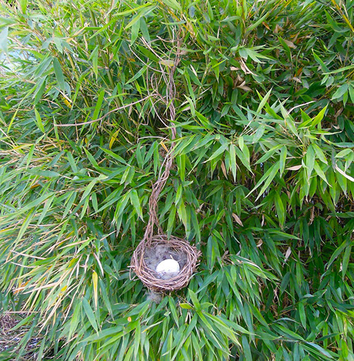 Nids suspendus et dispersés dans les feuillages et au sol.
